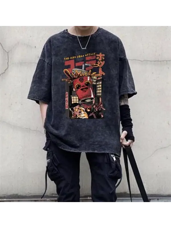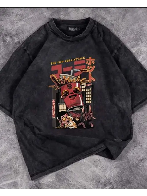 Yıkamalı The Iced Cola Attack Baskılı Unisex Oversize Vintage Eskitme T-Shirt