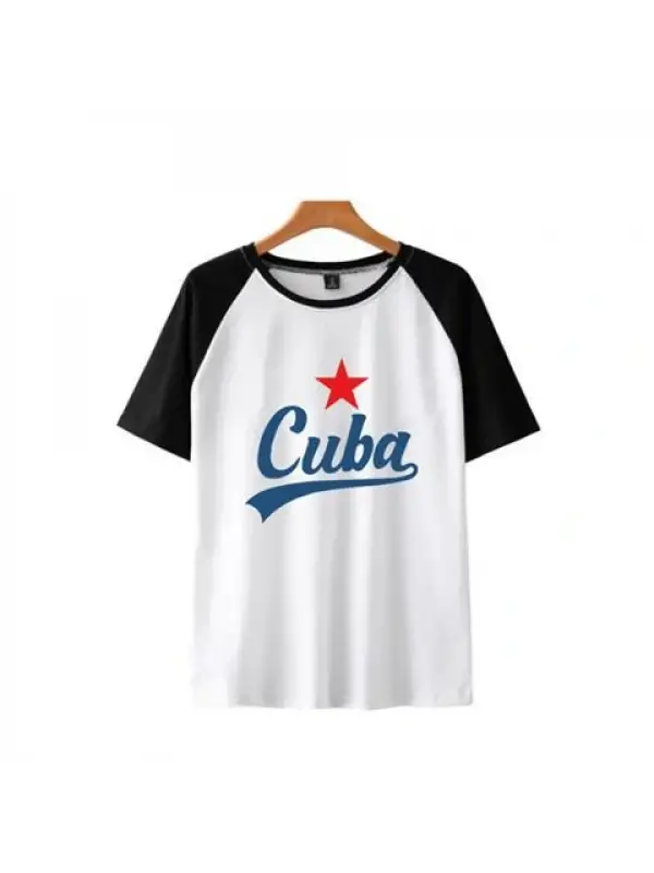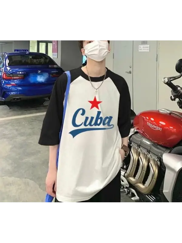 Cuba Baskılı Reglan Kol Beyaz Unisex Oversize T-Shirt