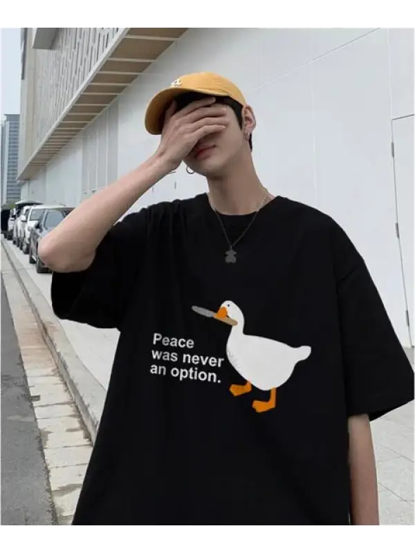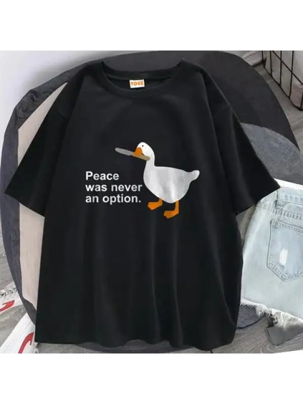 Duck 'Peace Was Never An Option' Baskılı Siyah Unisex Oversize T-Shirt
