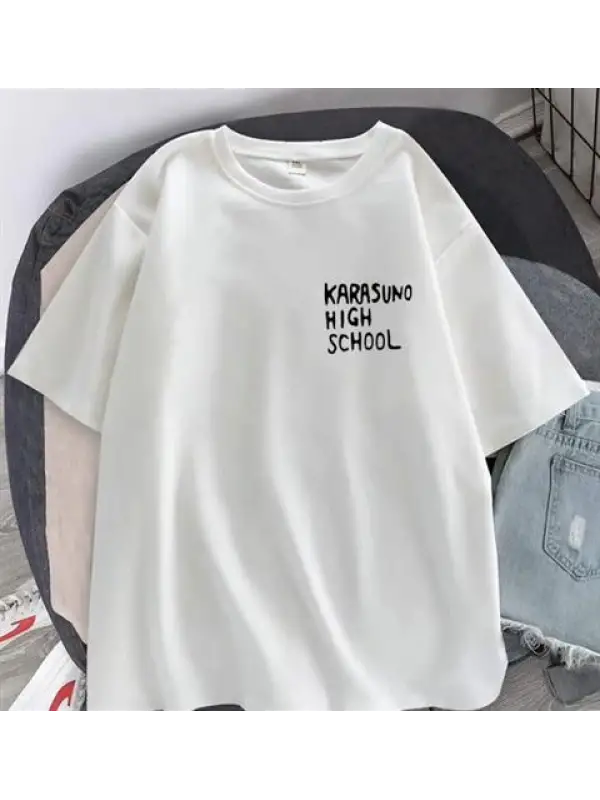 Karasuno High School Baskılı Beyaz Unisex Oversize T-Shirt
