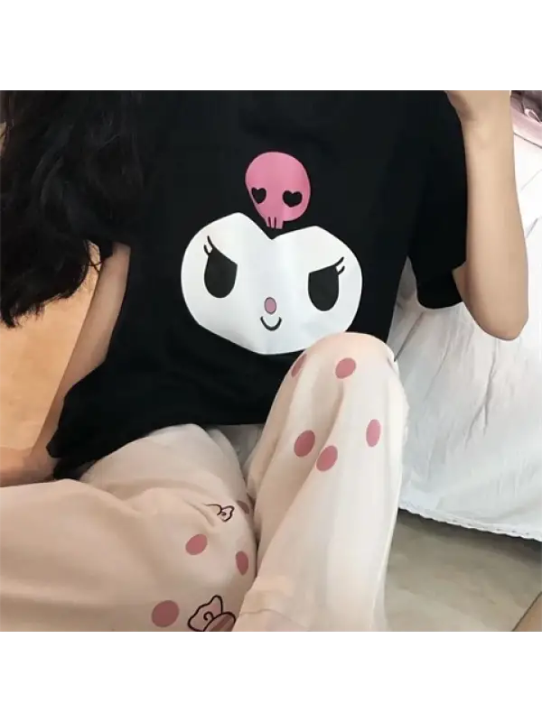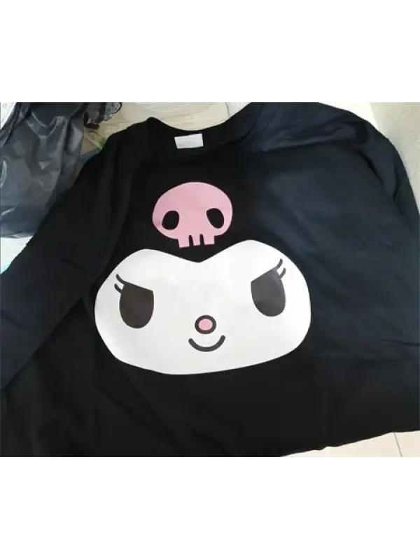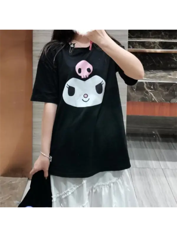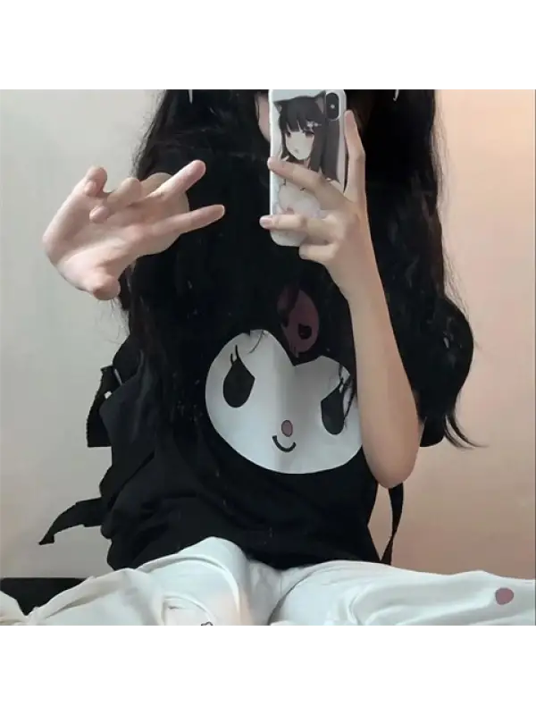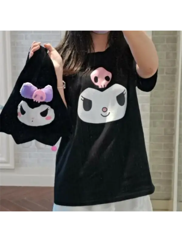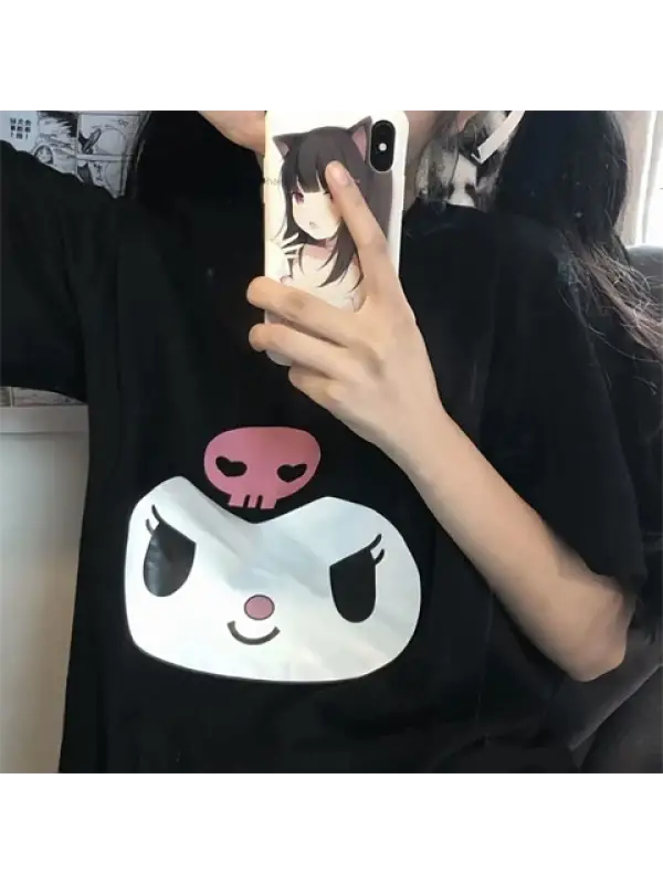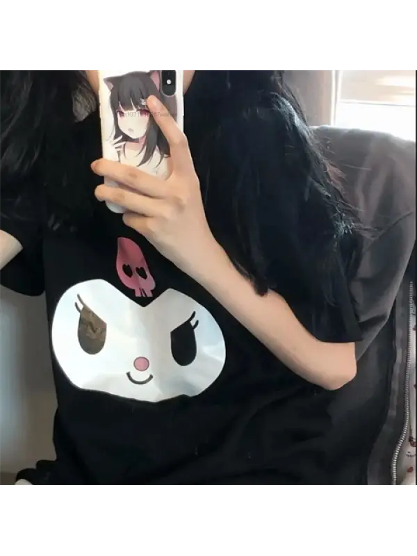 Kuromi Face Baskılı Siyah Unisex Oversize T-Shirt