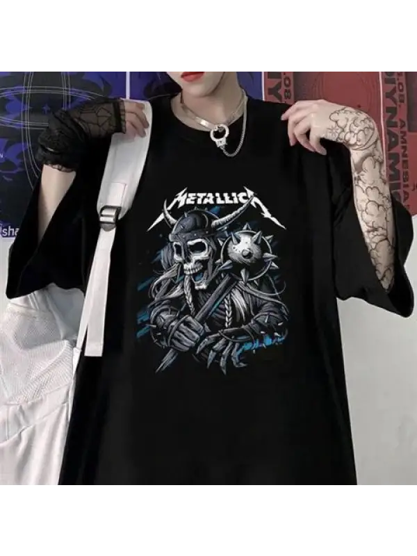 Metallica Knight Skull Baskılı Siyah Unisex Oversize T-Shirt
