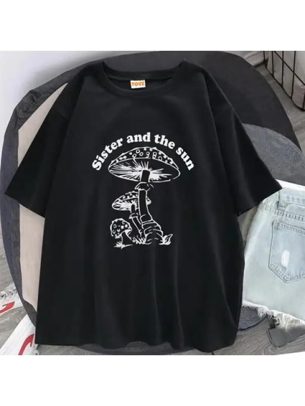 Sister And The Sun Baskılı Siyah Unisex Oversize T-Shirt
