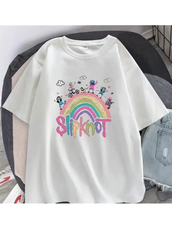 Slipknot Rainbow Baskılı Beyaz Unisex Oversize T-Shirt