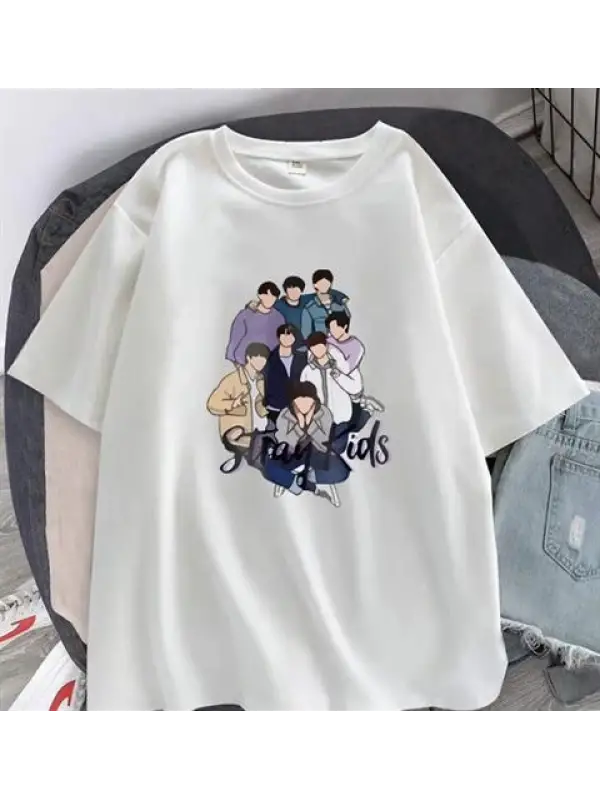 Stray Kids Artists Baskılı Beyaz Unisex Oversize T-Shirt