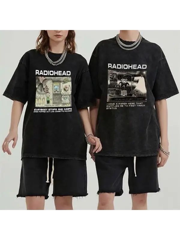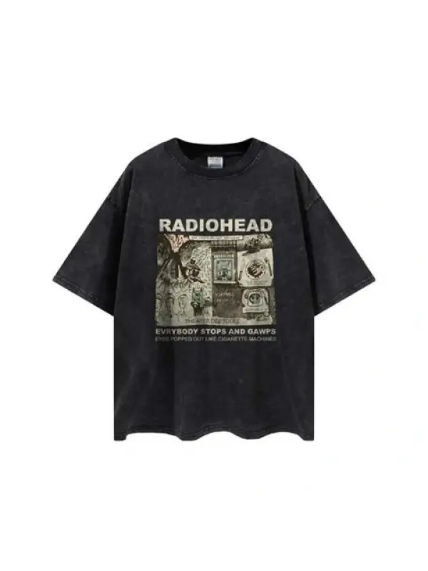 Yıkamalı Radiohead Poster Baskılı Unisex Oversize Vintage Eskitme T-Shirt