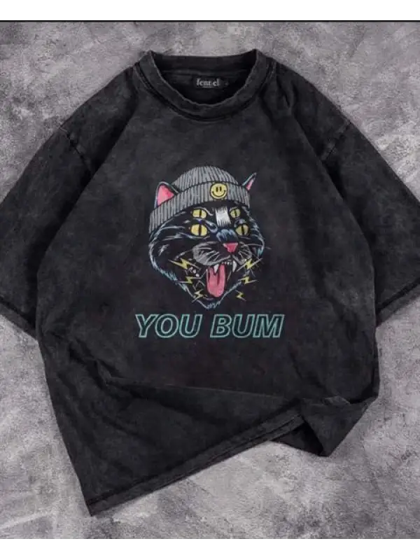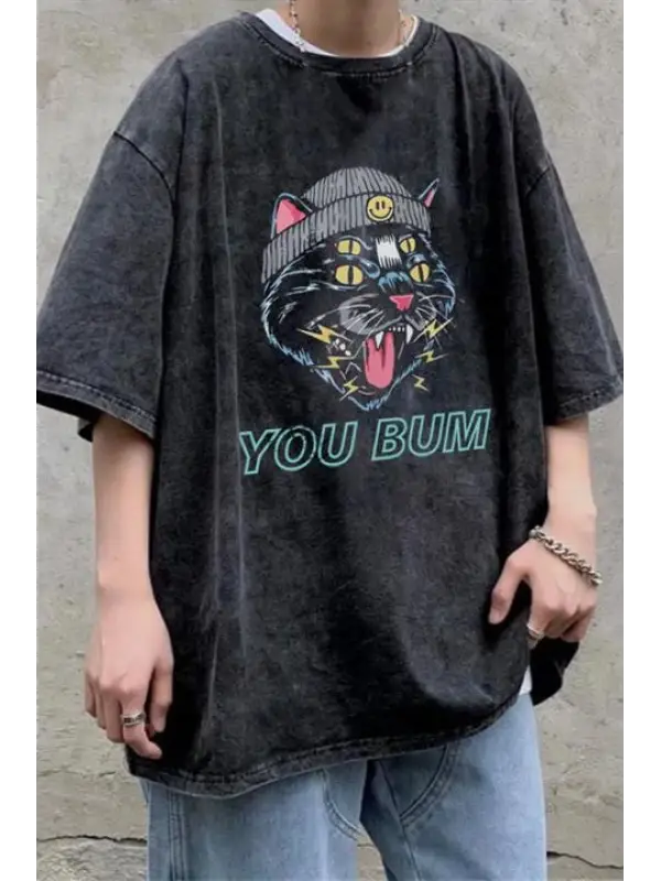 You Bum Cat Baskılı Siyah Unisex Oversize T-Shirt