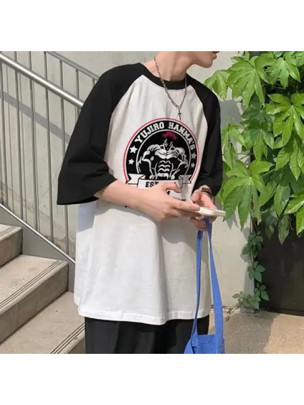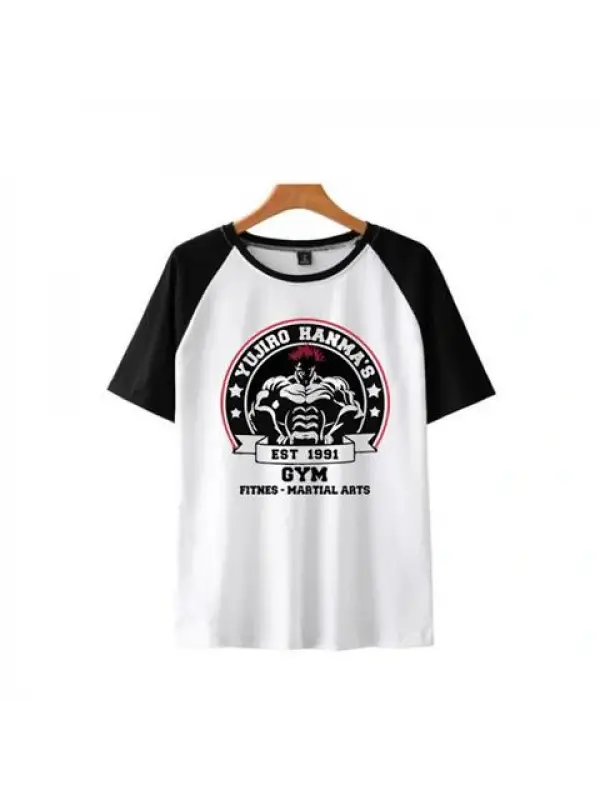 Yujiro Hanma's GYM Baskılı Reglan Kol Beyaz Unisex Oversize T-Shirt
