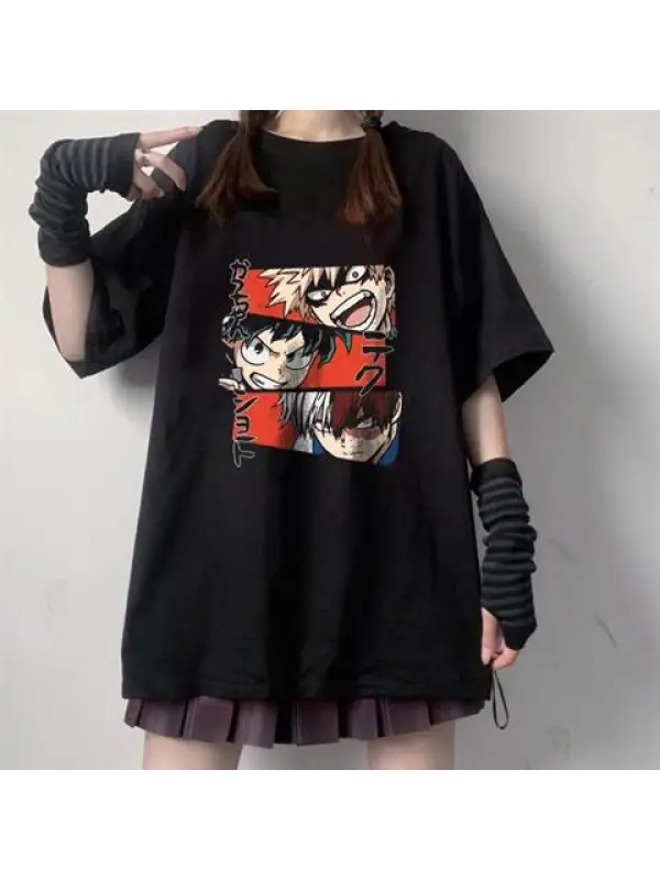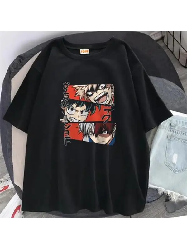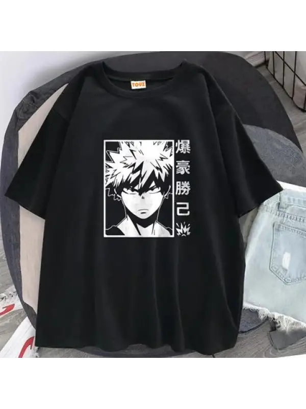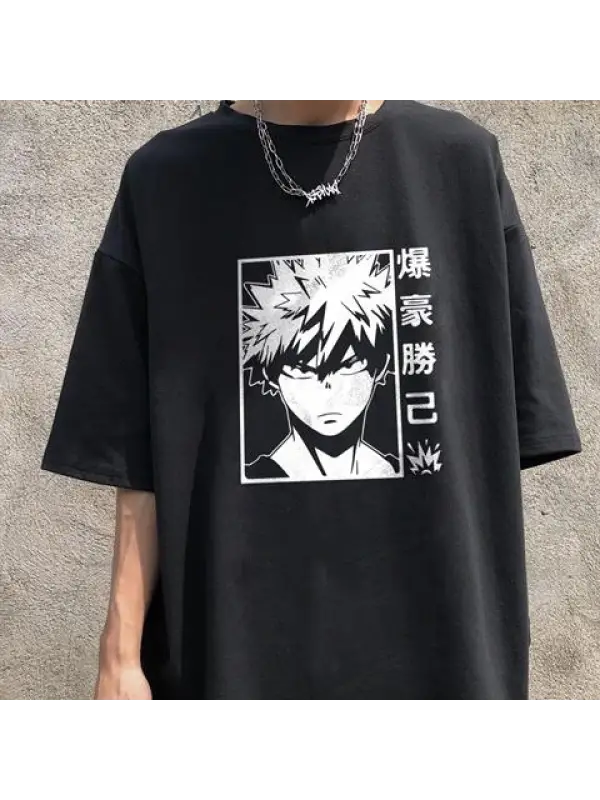 Anime Bakugou Baskılı Siyah Unisex Oversize T-Shirt