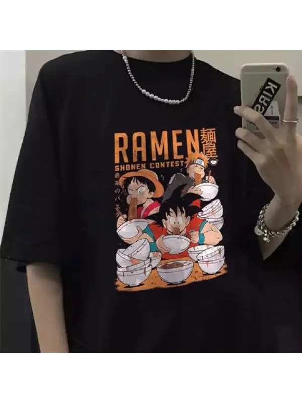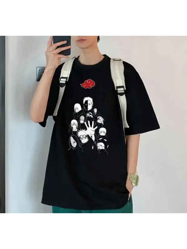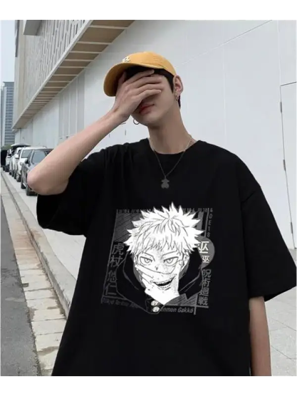 Anime Poster Baskılı Siyah Unisex Oversize T-Shirt