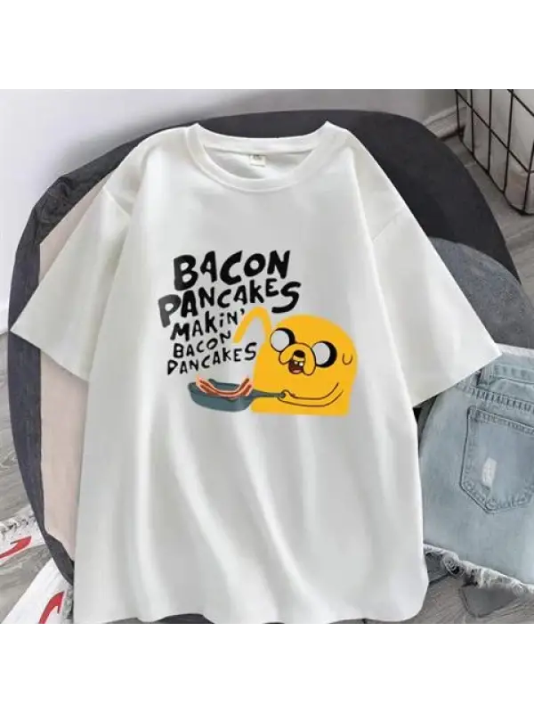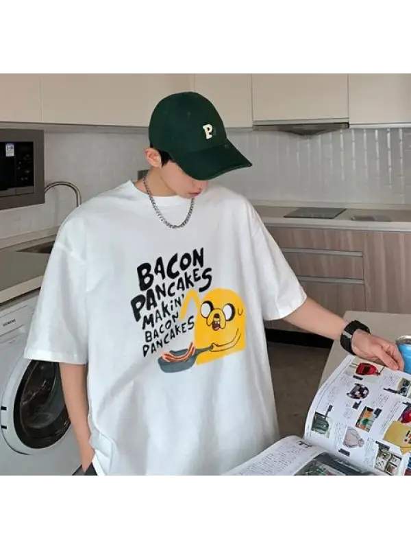 Bacon Pancakes Baskılı Beyaz Unisex Oversize T-Shirt