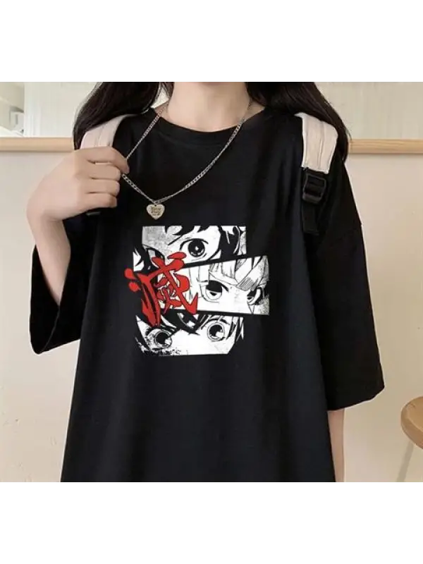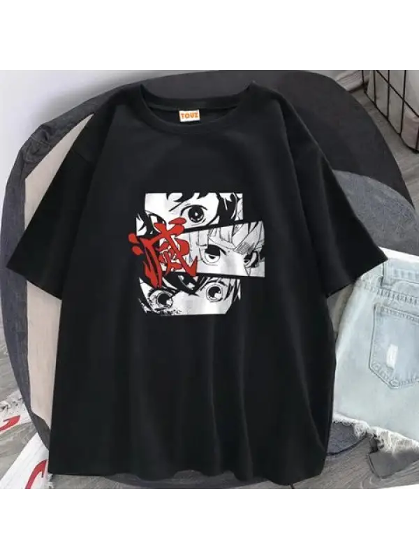Demon Slayer Eyes Baskılı Siyah Unisex Oversize T-Shirt