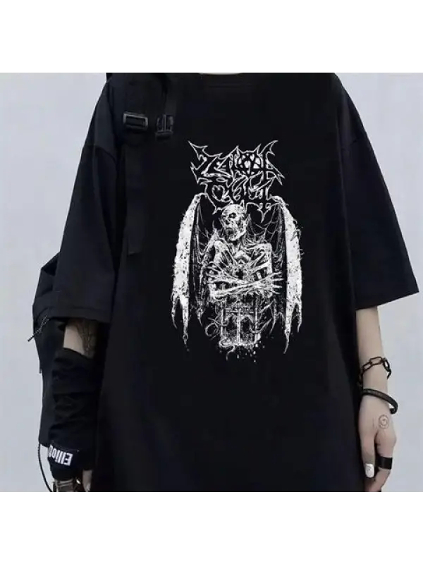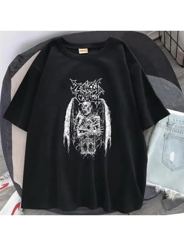 Gothic Devil Baskılı Siyah Unisex Oversize T-Shirt