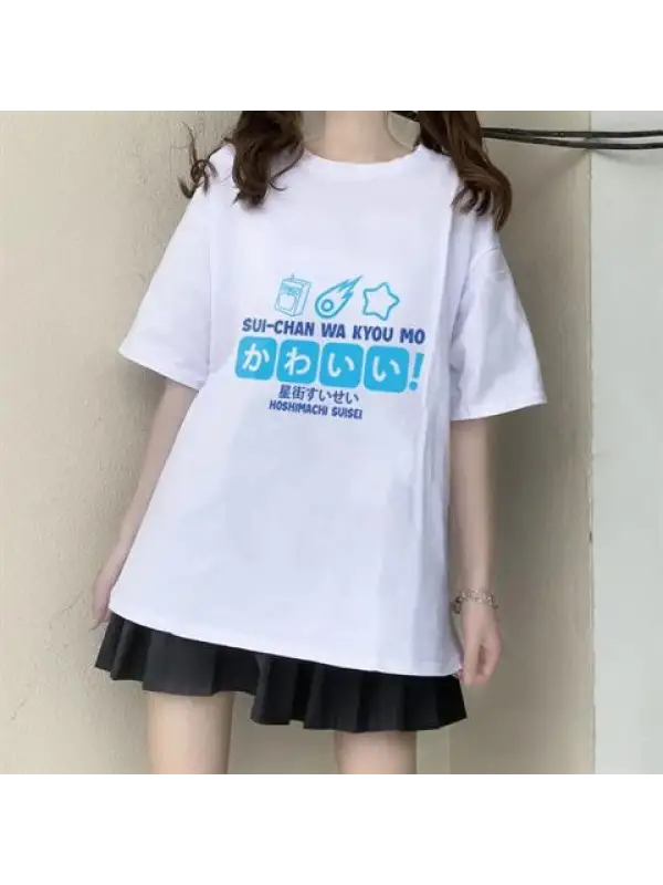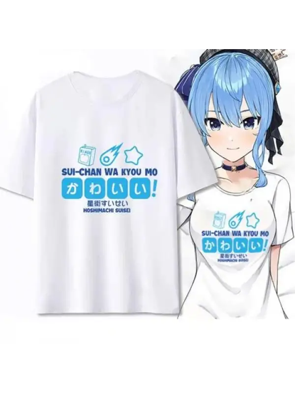 Hoshimachi Suisei Baskılı Beyaz Unisex Oversize T-Shirt