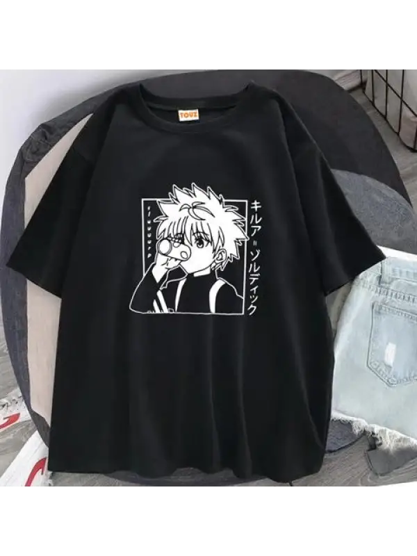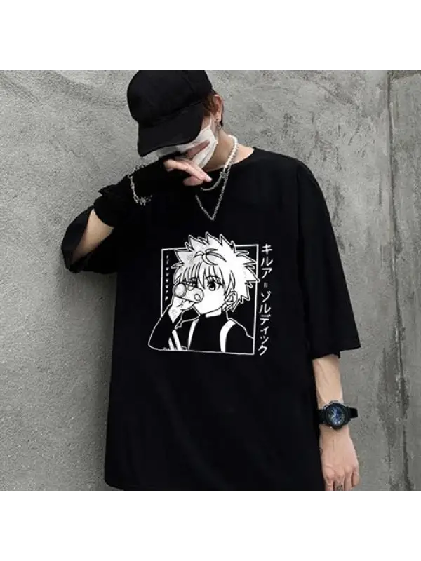 Hunter X Hunter Killua Baskılı Siyah Unisex Oversize T-Shirt