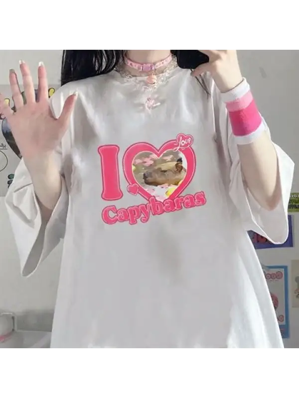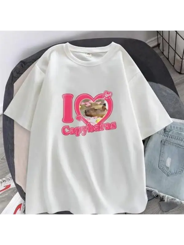 I Love Capybaras Baskılı Beyaz Unisex Oversize T-Shirt