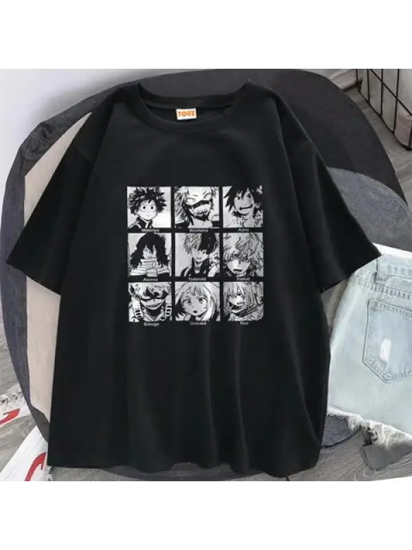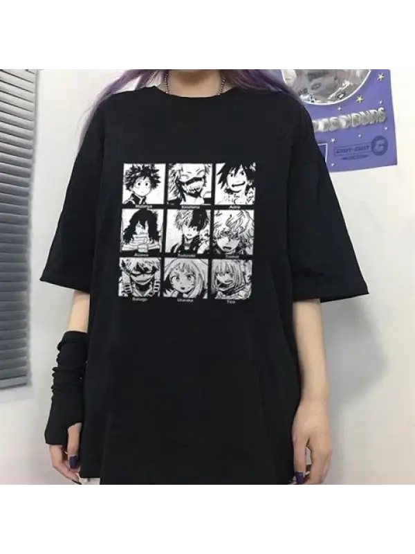 My Hero Academia Collage Baskılı Siyah Unisex Oversize T-Shirt