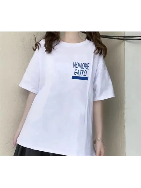Nomore Gakko Baskılı Beyaz Unisex Oversize T-Shirt