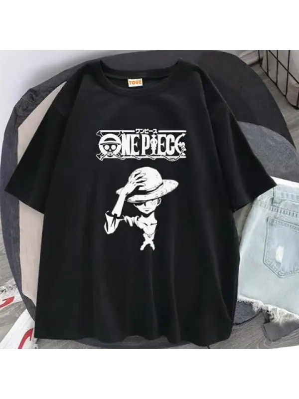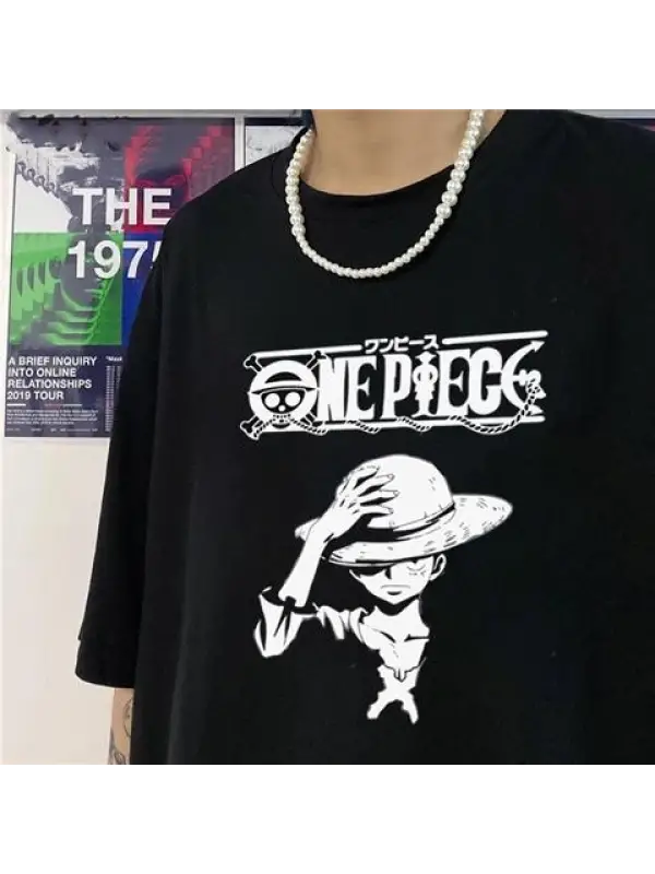 One Piece Baskılı Siyah Unisex Oversize T-Shirt