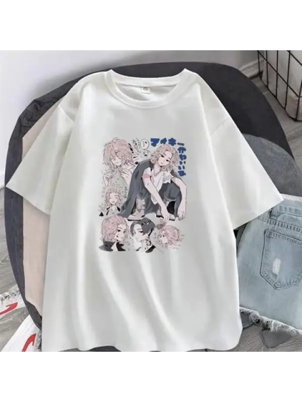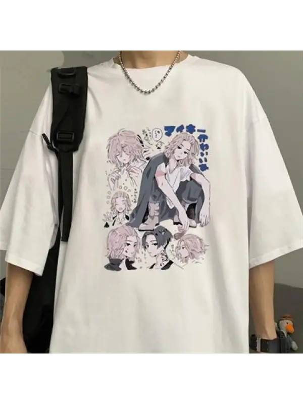 Tokyo Revengers Collages Baskılı Beyaz Unisex Oversize T-Shirt