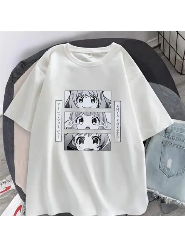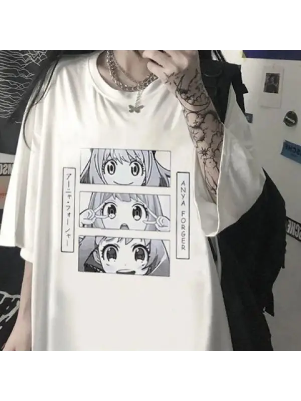 Triple Anya Forger Baskılı Beyaz Unisex Oversize T-Shirt