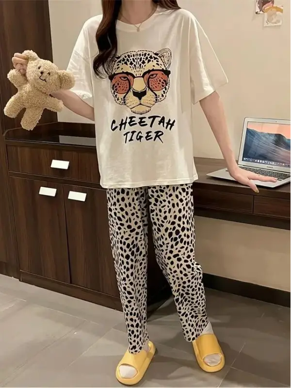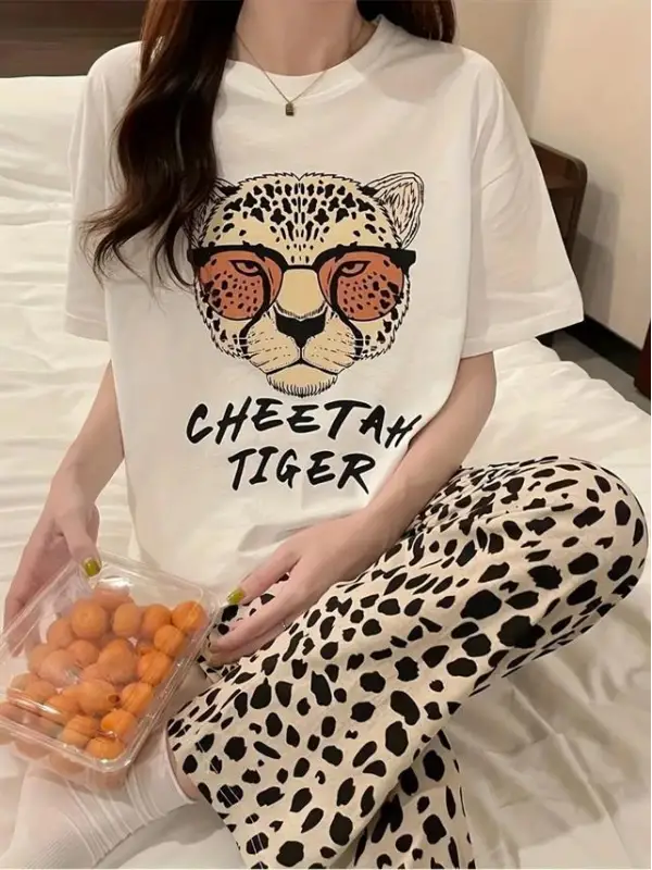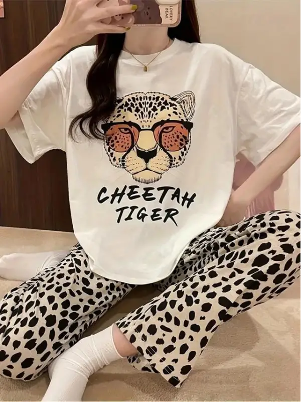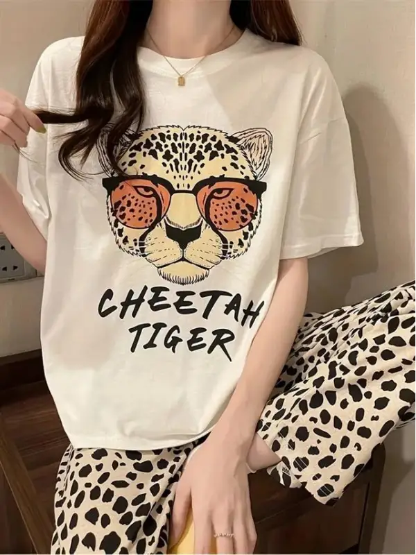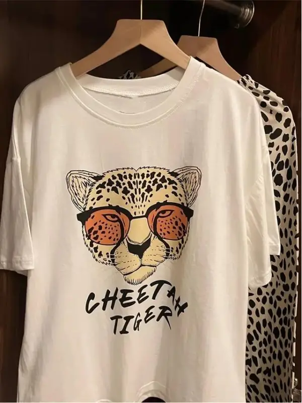 Çita Tiger Desenli Oversize Unisex T-Shirt
