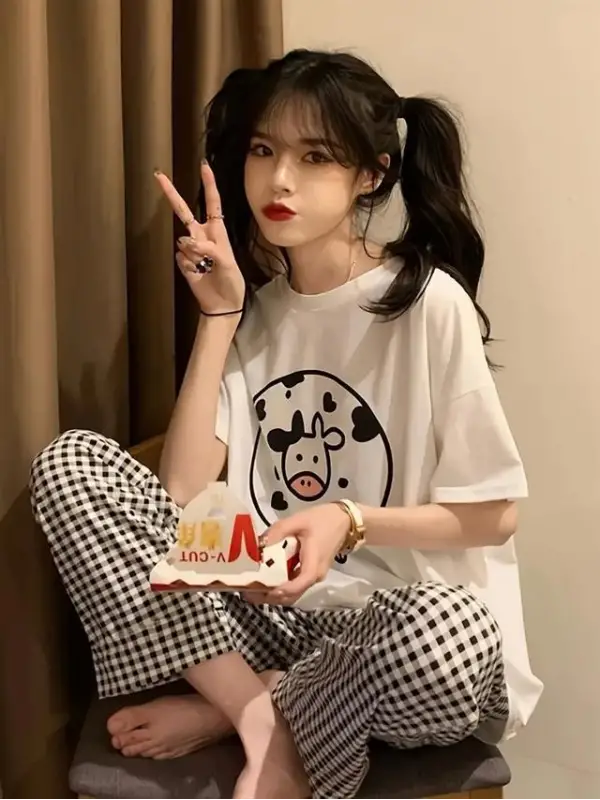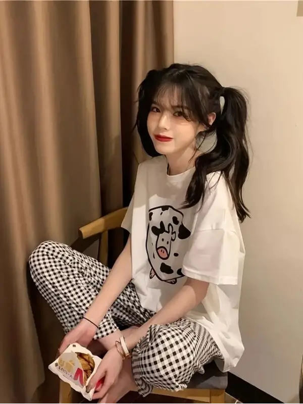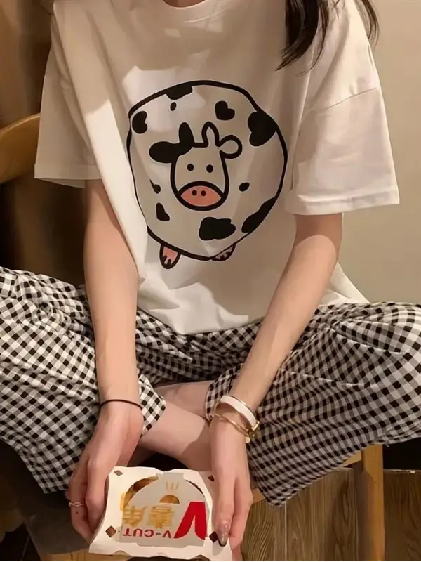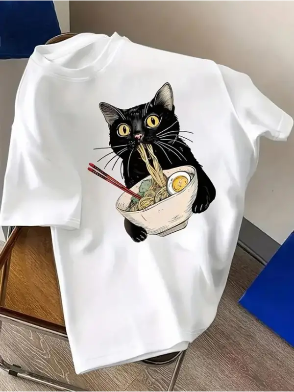 Sushi Black Cat Baskılı Oversize T-Shirt