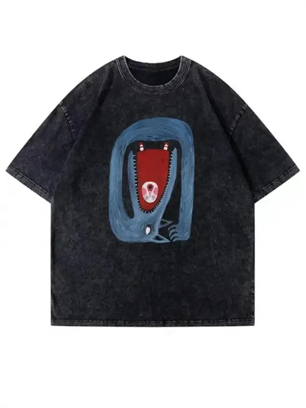 Yıkamalı Kurt Ve Kırmızı Başlıklı Kız Oversize Vintage T-Shirt