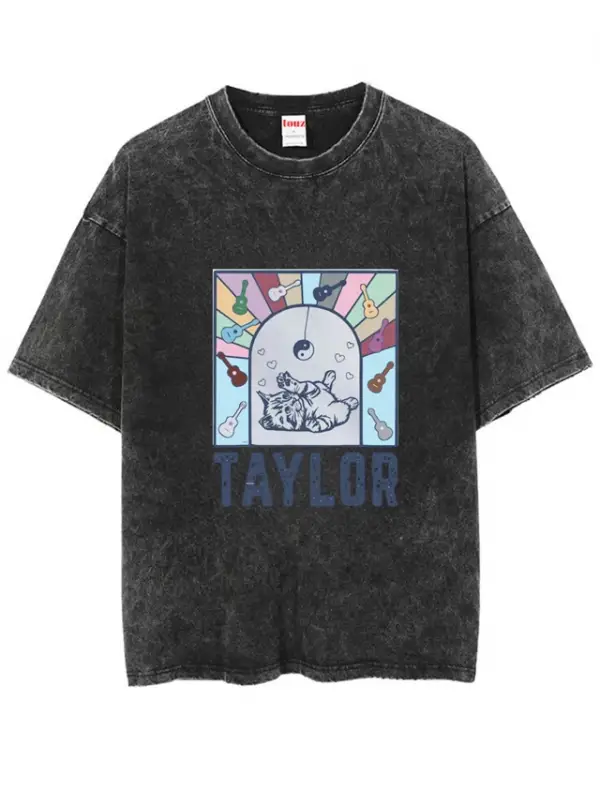 Yıkamalı Taylor Swift Cat Oversize Vintage T-Shirt