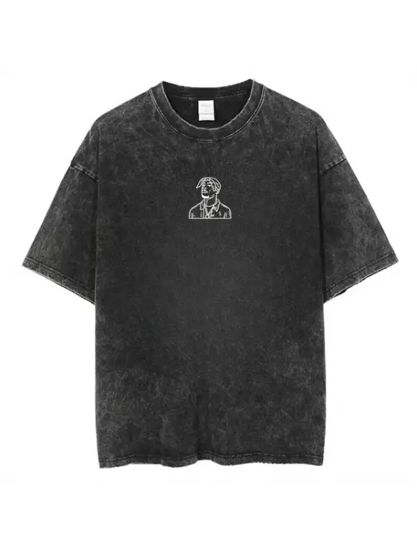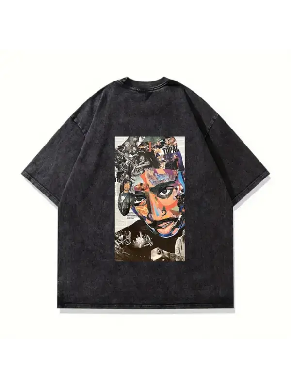 Yıkamalı Tupac Kolaj Oversize Vintage T-Shirt