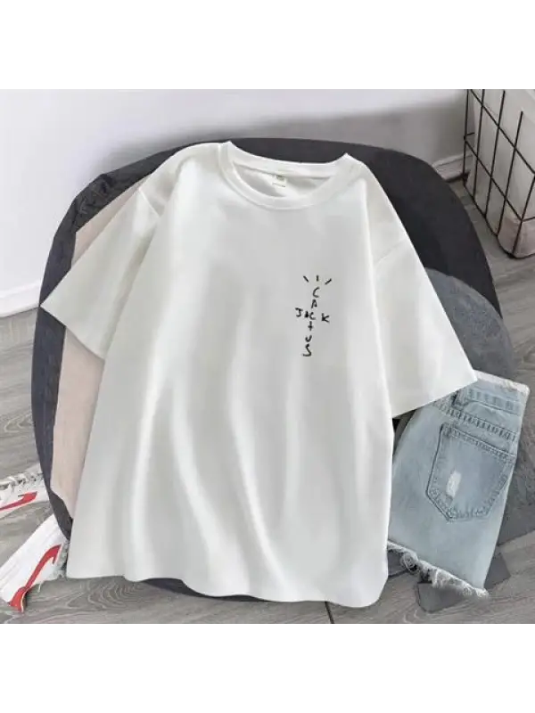 Cactus Jack Baskılı Beyaz Unisex Oversize T-Shirt