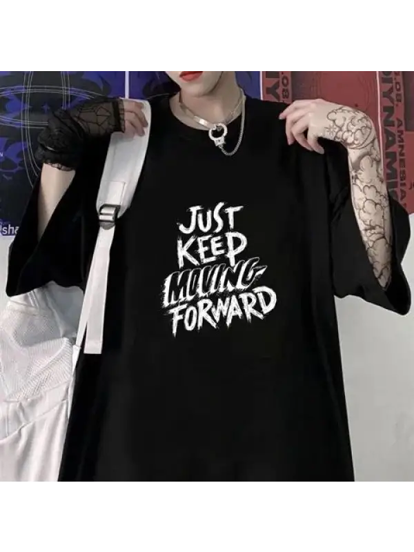 'Just Keep' Siyah Unisex Oversize T-Shirt