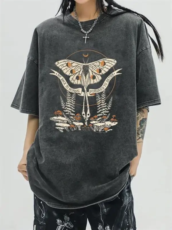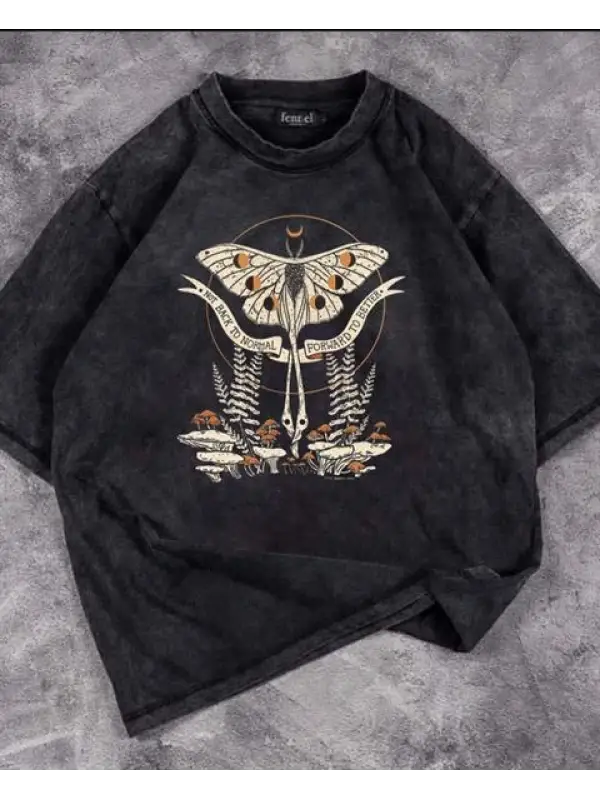 Butterfly & Mushrooms Siyah Unisex Oversize T-Shirt