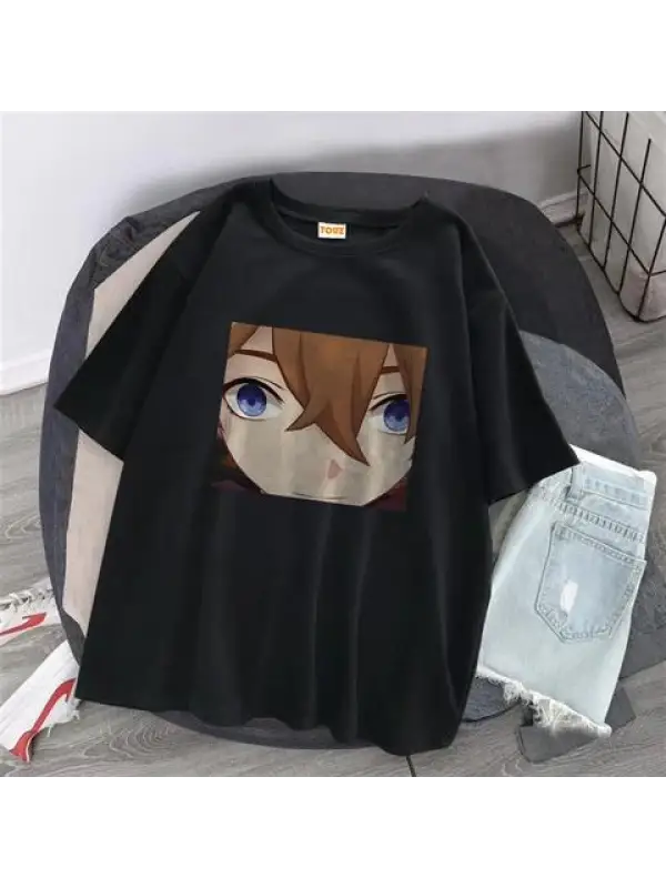 Genshin Impact Baskılı Beyaz Unisex Oversize T-Shirt