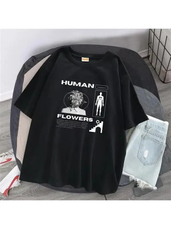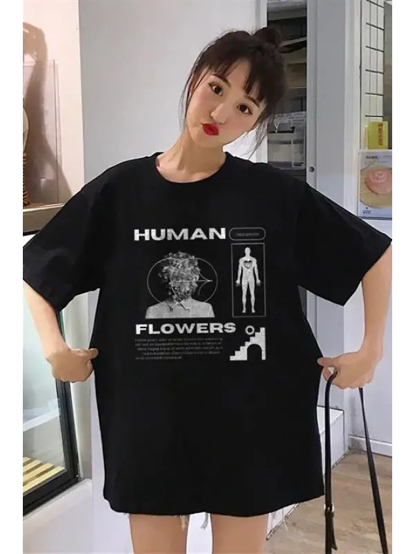 Human Flowers Siyah Unisex Oversize T-Shirt