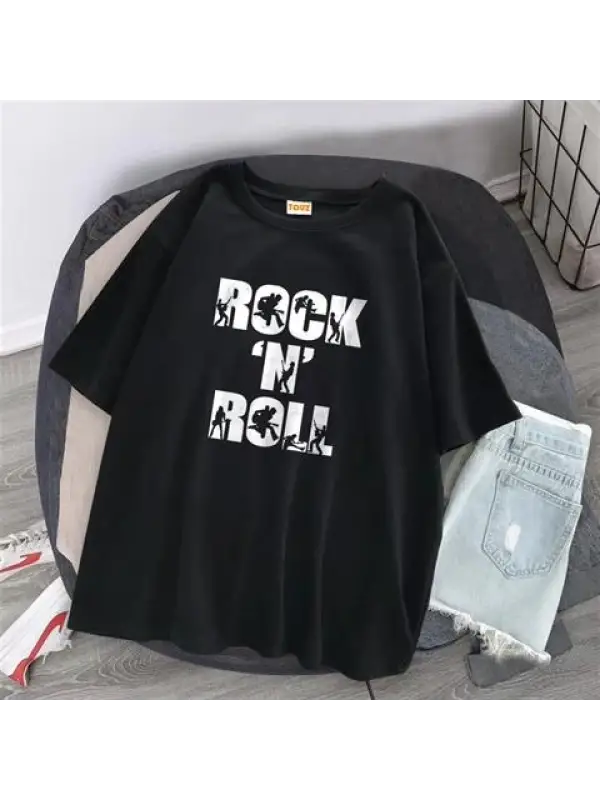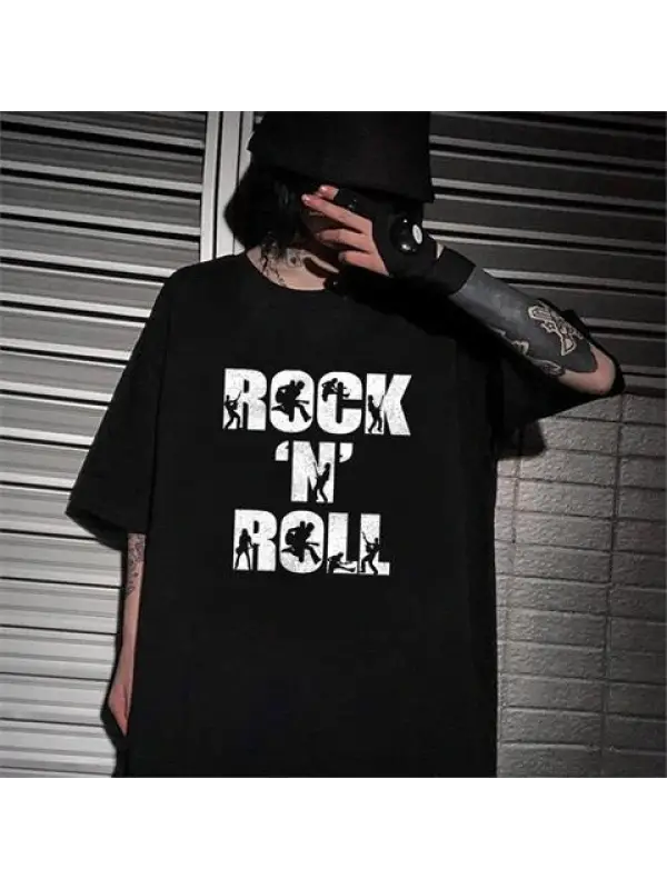 Rock 'N' Roll Siyah Unisex Oversize T-Shirt