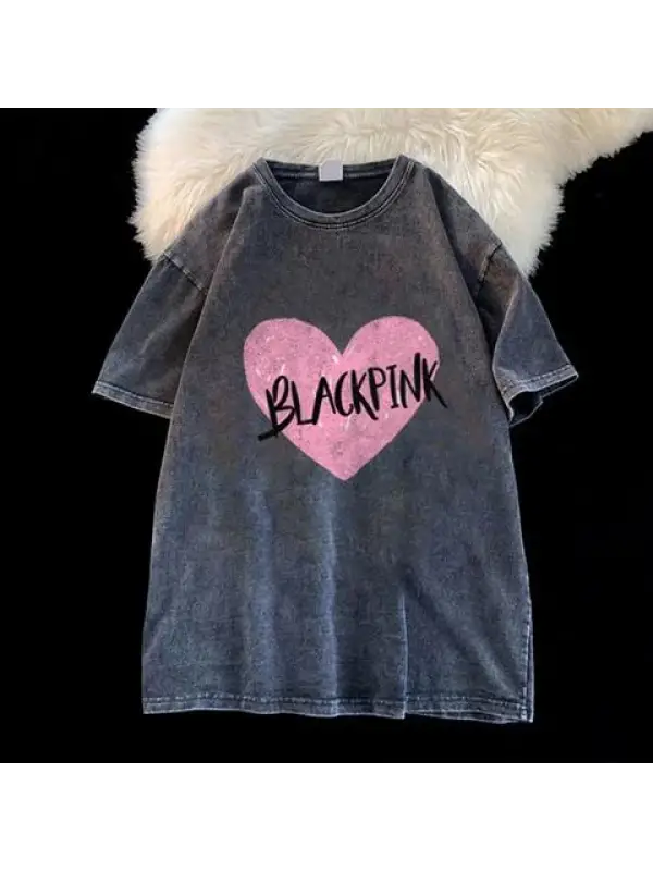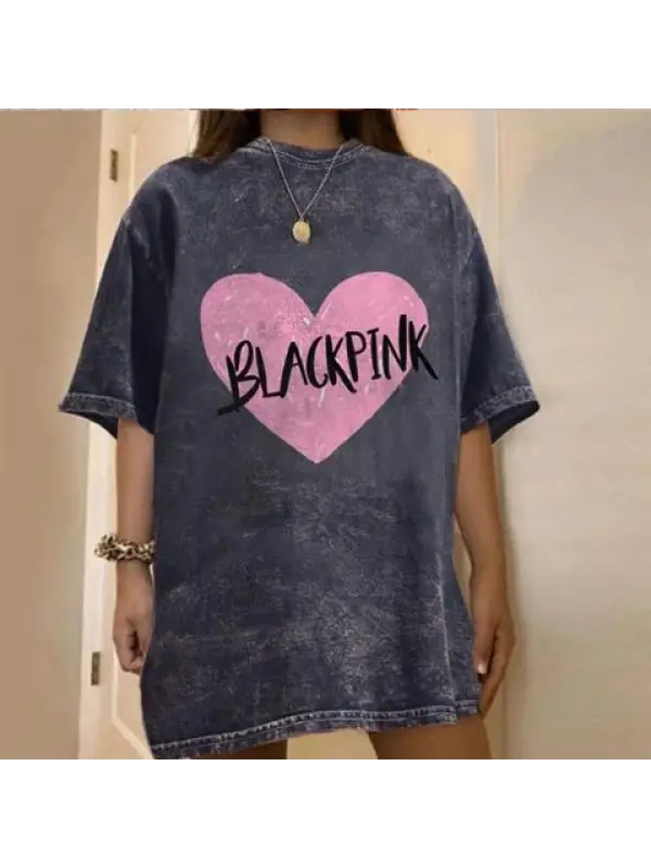 Black Pink Heart Baskılı Beyaz Unisex Oversize T-Shirt