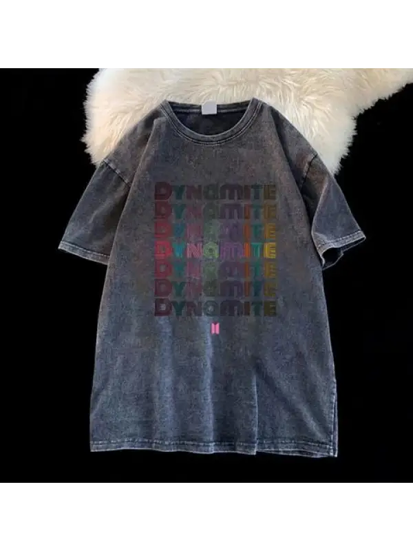 BTS Dynamite Baskılı Beyaz Unisex Oversize T-Shirt