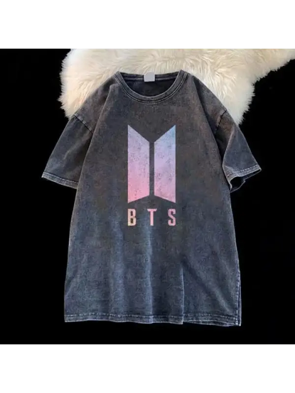 BTS Logo Siyah Unisex Oversize T-Shirt