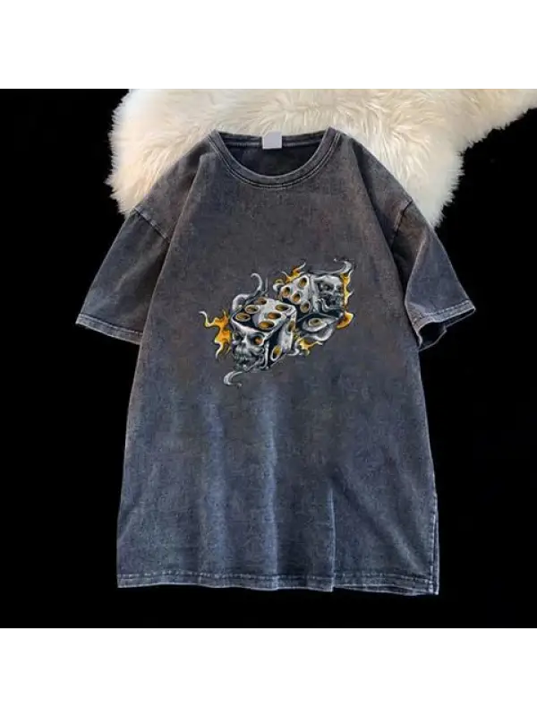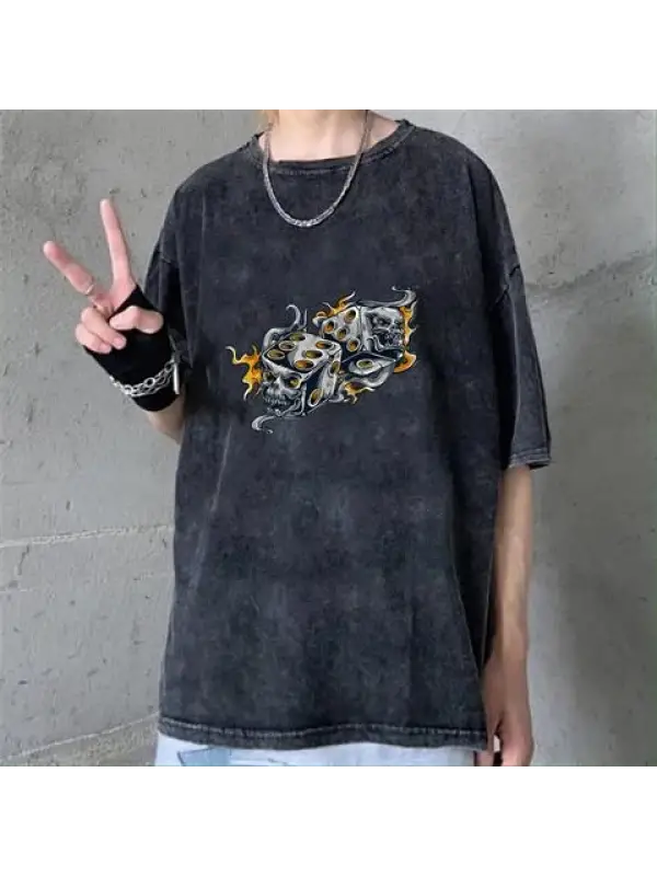 Flaming Dice Skulls Siyah Unisex Oversize T-Shirt