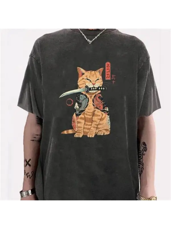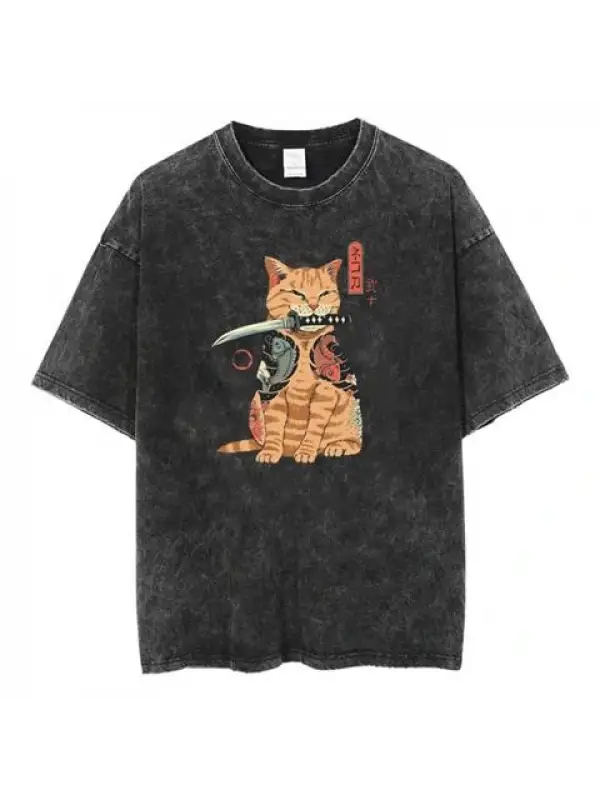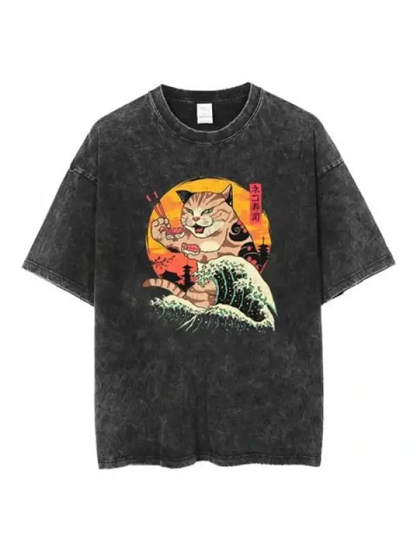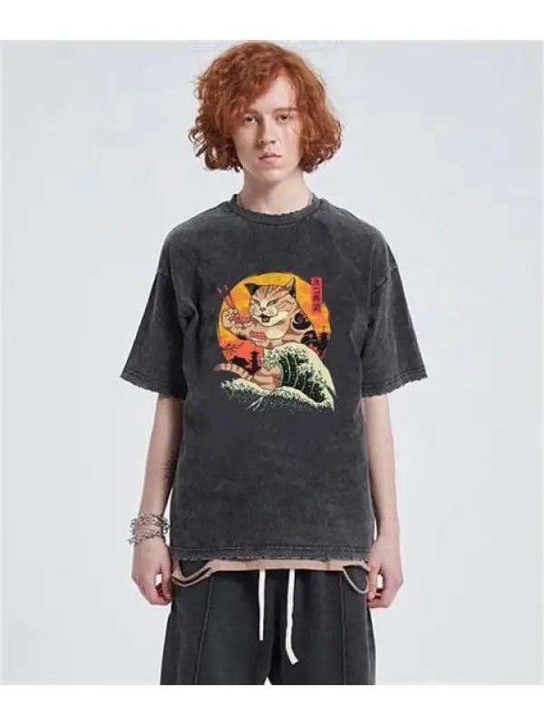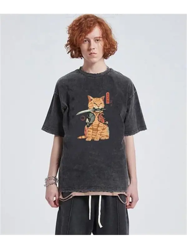 Artist Cat Baskılı Siyah Unisex Oversize T-Shirt