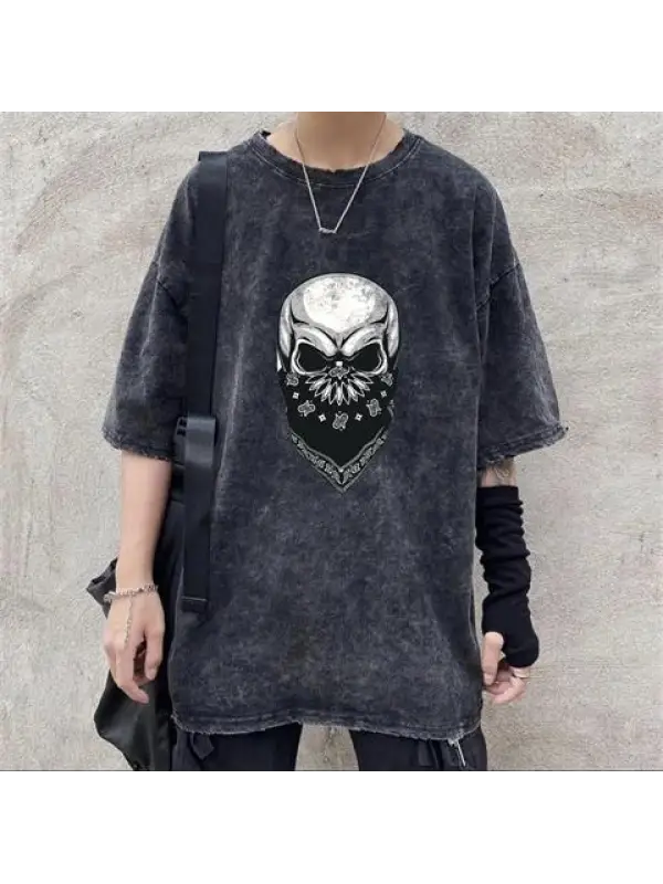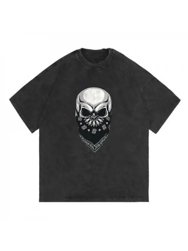 Gang Skull Baskılı Siyah Unisex Oversize T-Shirt