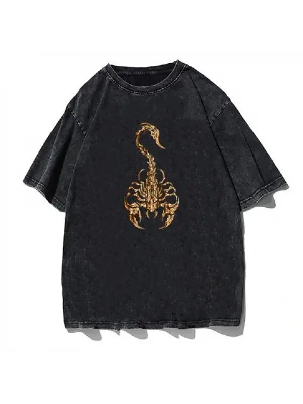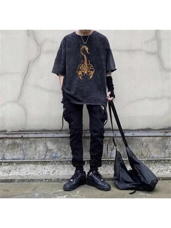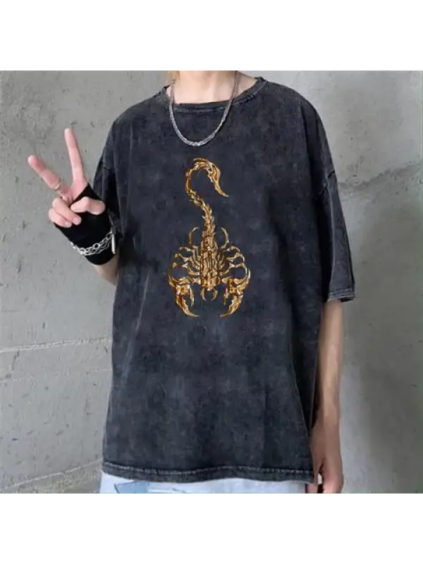 Gothic Scorpion Baskılı Siyah Unisex Oversize T-Shirt