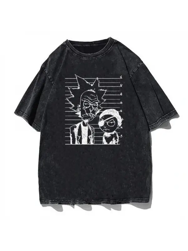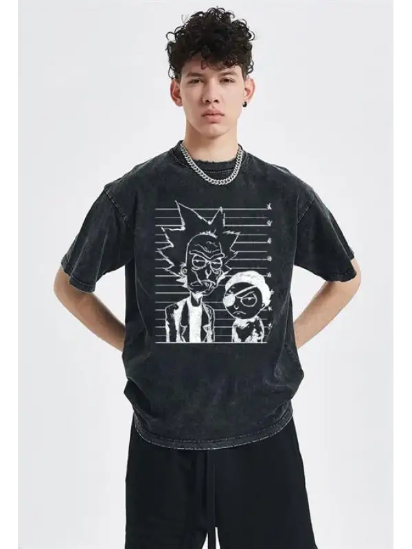 R&M Baskılı Siyah Unisex Oversize T-Shirt
