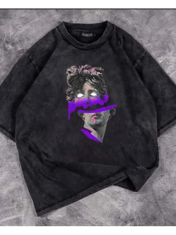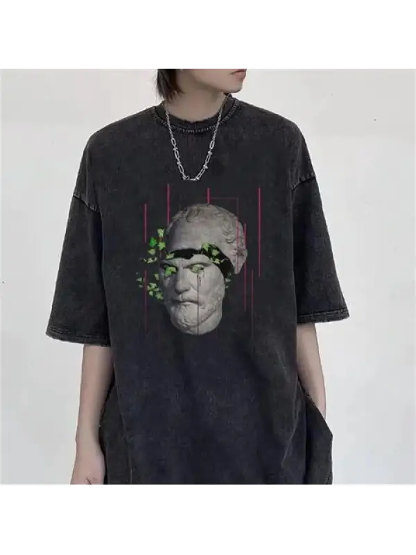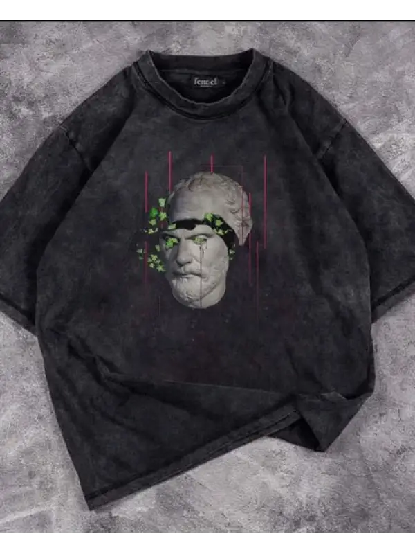 Yıkamalı Sculpture Art & Leafs Unisex Eskitme T-Shirt