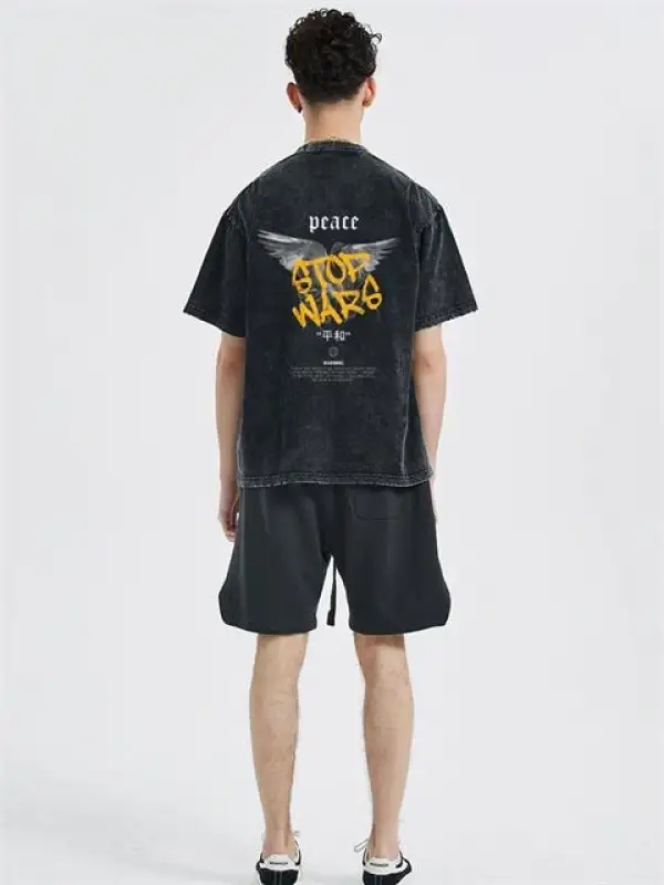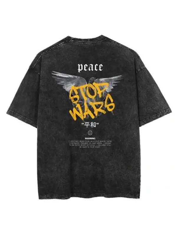 Yıkamalı Sırt Baskılı Peace Unisex Eskitme T-Shirt
