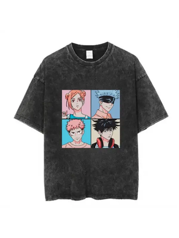 Yıkamalı Anime Jujutsu Kaisen Baskılı Unisex Oversize Vintage T-Shirt
