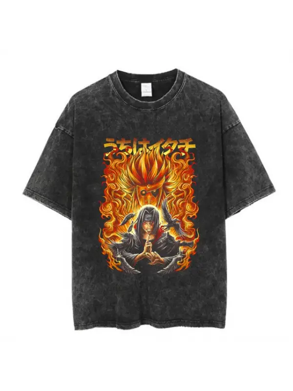 Yıkamalı Anime Naruto Itachi Baskılı Unisex Oversize Vintage T-Shirt