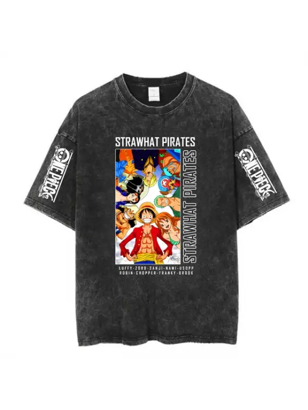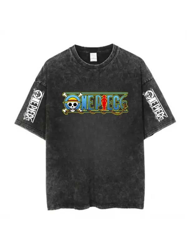 Yıkamalı Anime One Luffy Baskılı Unisex Oversize Vintage T-Shirt