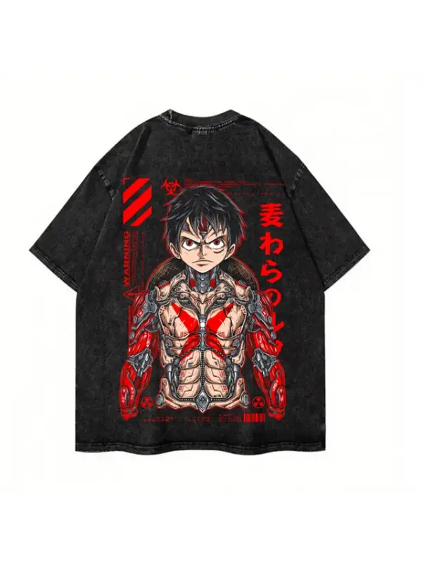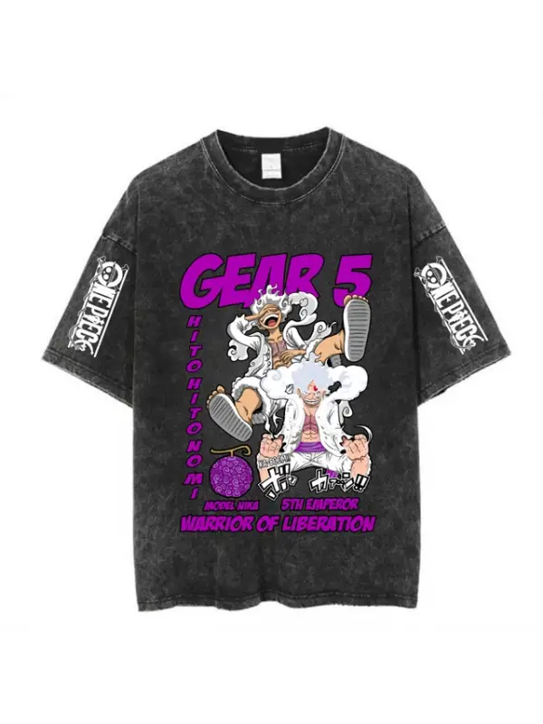 Yıkamalı Anime One Piece Gear Five Baskılı Unisex Oversize Vintage T-Shirt